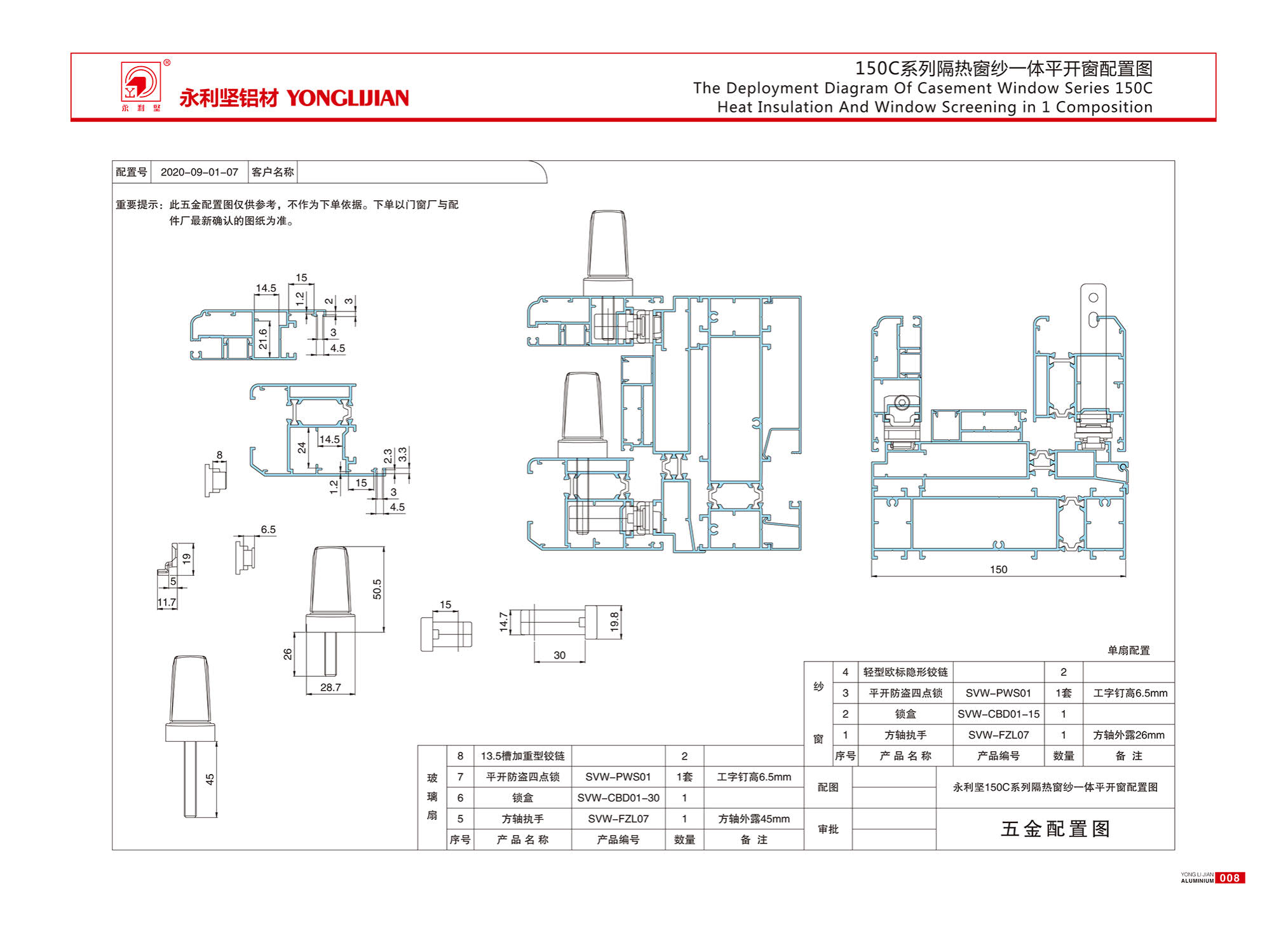 150C系列隔熱窗紗一體窗(內(nèi)外平框、隱排水)
